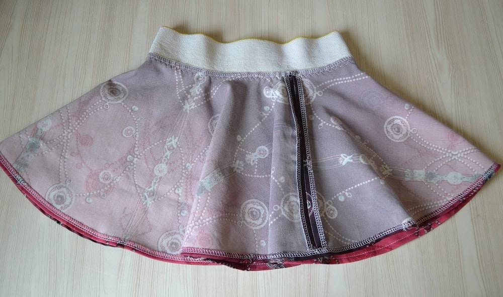 Так выглядит юбка-солнце с поясом резинкой для девочки с изнаночной стороны.