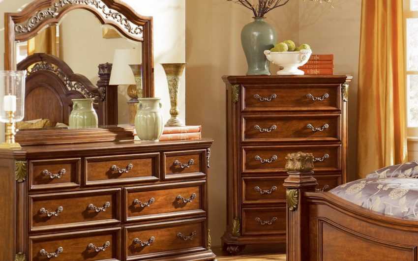 Классика. Для классической спальни рекомендуется выбирать изделия из натурального дерева разных оттенков. Не стоит дополнять такой интерьер моделями, украшенными стразами или другими блестящими элементами декора.