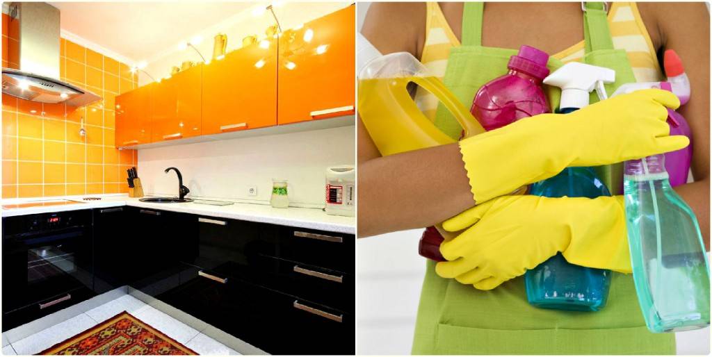 А вот кухонные гарнитуры требуют более тщательного ухода, так как несмотря на работу вытяжки, на фасад мебели оседает жир. Чтобы содержать кухню в чистоте, следует ежедневно протирать её губкой, смоченной в мыльной пене, а после сухой тряпочкой. Не забываем и о специальных полиролях.