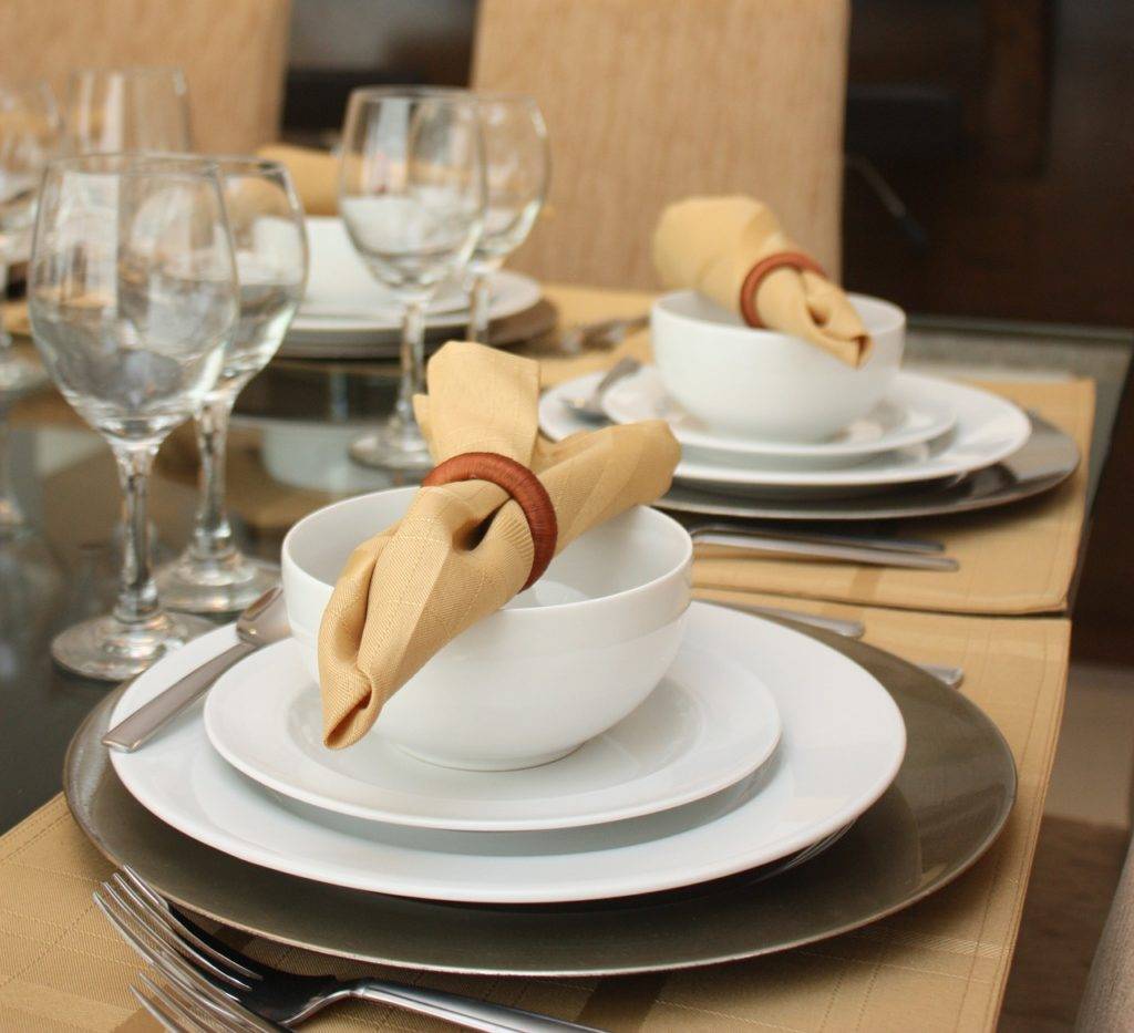 Столовый текстиль – обязательный атрибут любого приёма пищи. В повседневности мы используем их бумажный одноразовый вариант. Но для ужинов и торжественных случаев применяются тканевые салфетки, которые красиво укладывают под тарелку или скручивают в трубочку, вставляя в декоративное кольцо.