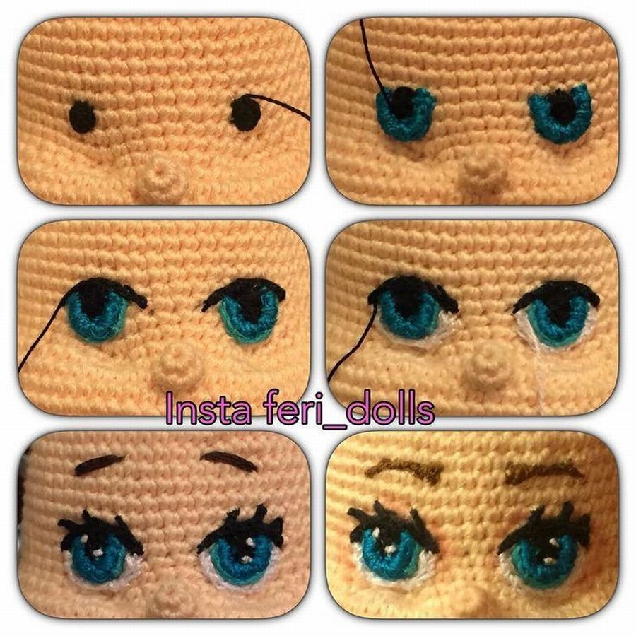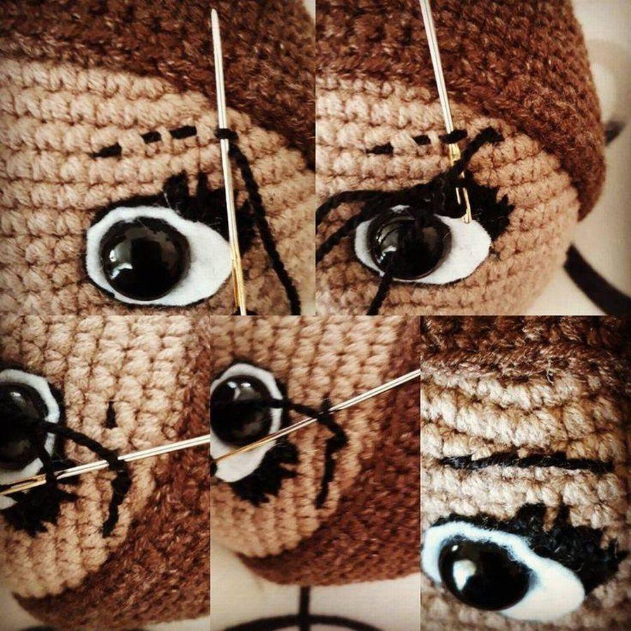 Многие рукодельницы вывязывают глаза прямо на лице или мордочке готовой игрушки.