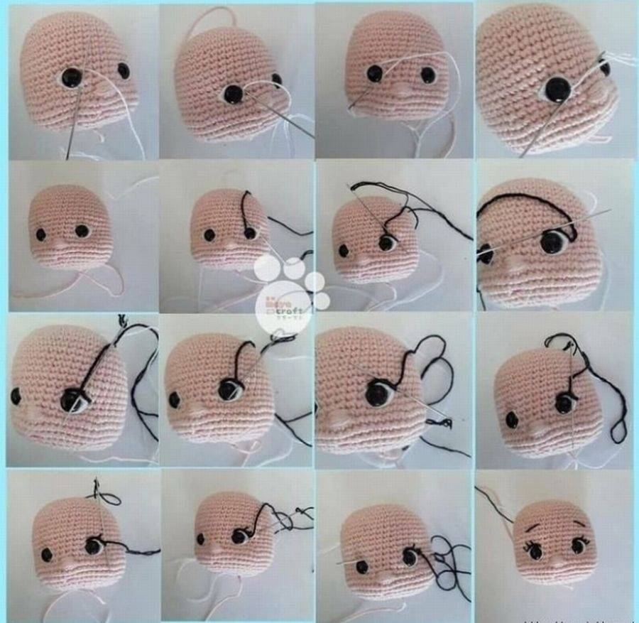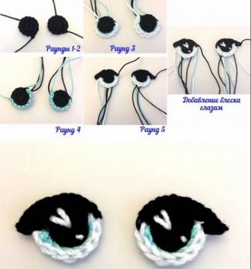 На картинке ниже изображена подробная инструкция для пришивания пластиковых глазок с белой подложкой.