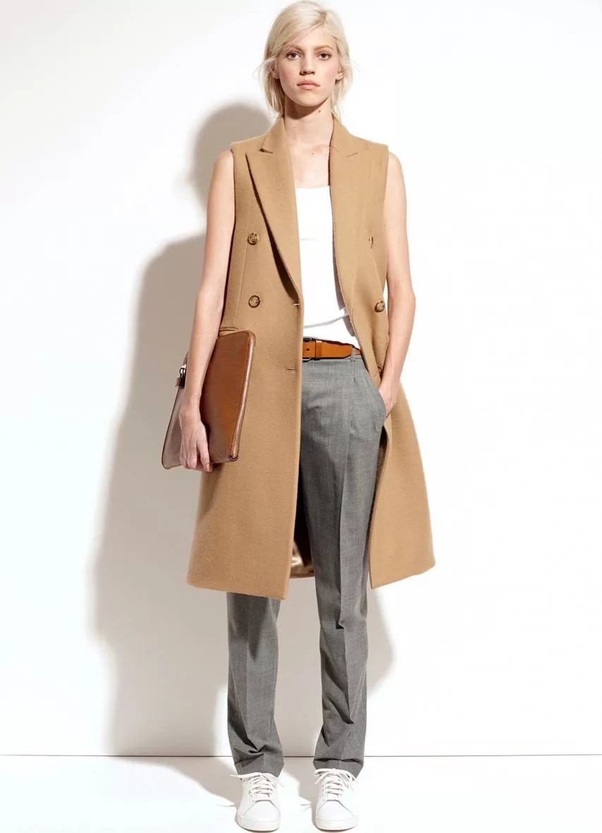 Идеально подходят пальто без рукавов для женского типа фигуры перевернутый треугольник. Модель зрительно сужает линию плеч, а также скрывает узкие бедра, делая силуэт приближенным к песочным часам. Избегать следует излишнего декора в верхней части модели.
