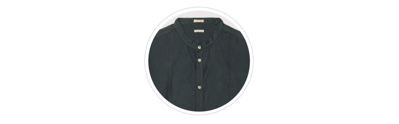 По мере того, как формальный стиль исчезает или размывается из повседневности людей, это неизбежно влияет на вид самых классических вещей. Так и с рубашками. Этот «мандариновый» воротник, по сути именно отсутствующий воротник — это практически переход рубашки к футболке. По сравнению с такой рубашкой футболки поло выглядят намного официальнее. Если тебе такой ворот нравится, ищи что то из льна, так ты практически не будешь ощущать на себе этот предмет — а это очень актуально в жаркую погоду.