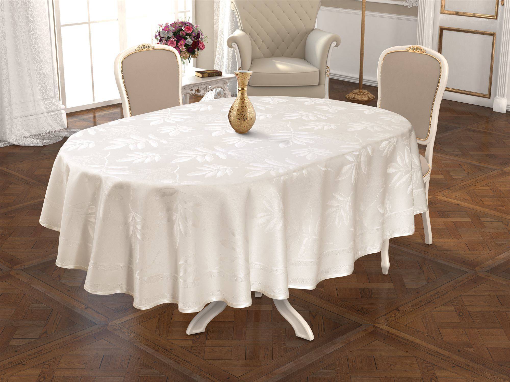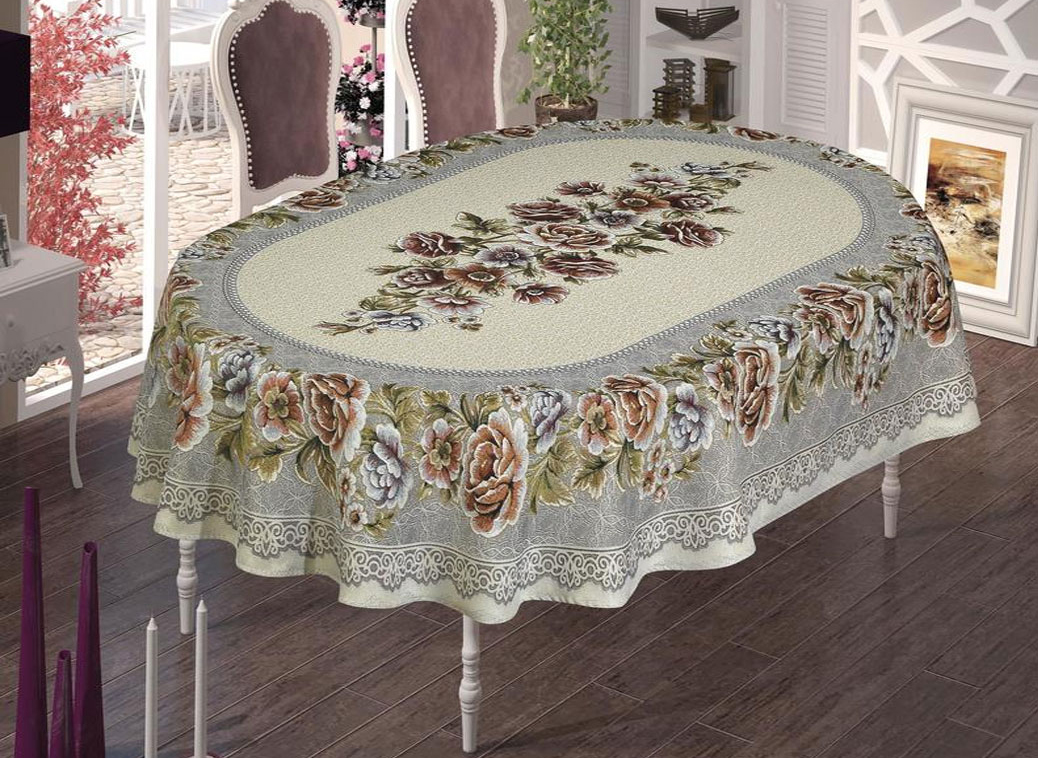 - Эстетично. Каждой хозяйке хочется, чтобы были не только вкусные блюда, но и красиво покрыт стол; отлично будет смотреться овальная скатерть на кухне.