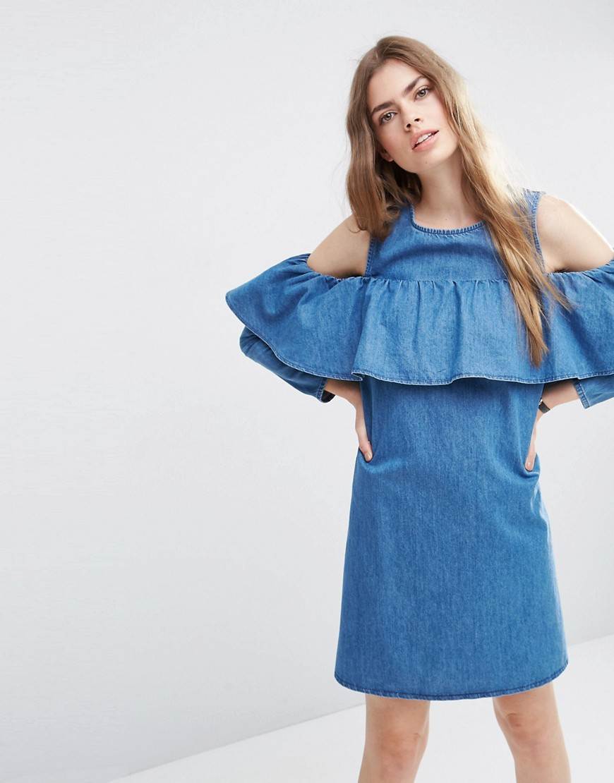 Широкие и объемные оборки ассоциируются с женственностью и грациозностью. Поэтому платья с воланами можно сочетать и со строгими пиджаками, и даже с курткой-косухой. Обувь лучше всего подбирать простых невычурных форм: