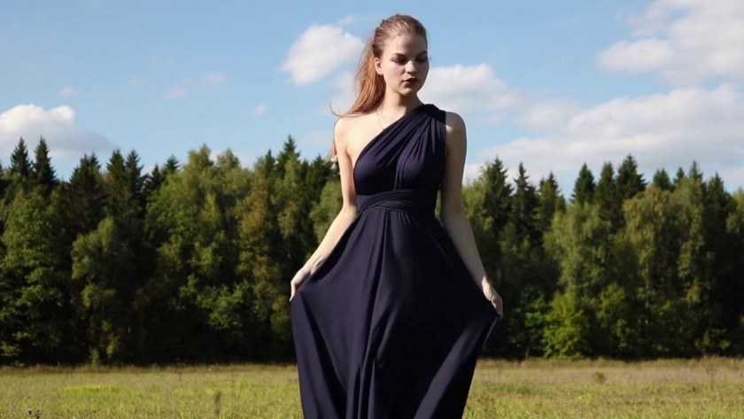 Для изготовления потрясающего летнего платья-трансформер потребуется примерно 3 метра очень эластичной синтетической ткани, которая одинаково выглядит с обеих сторон.