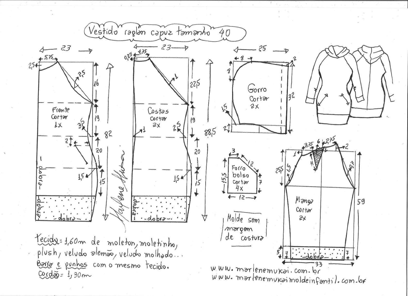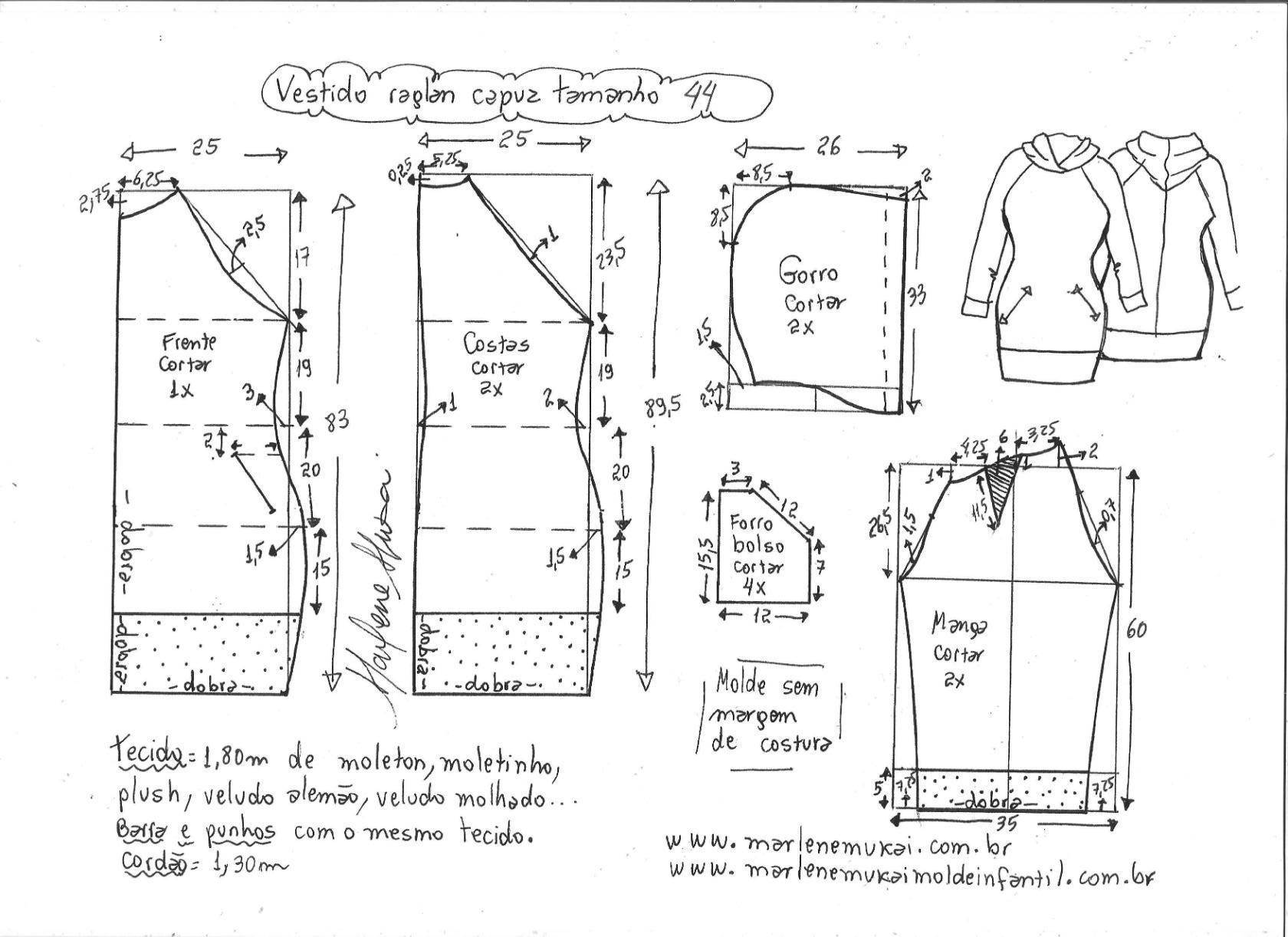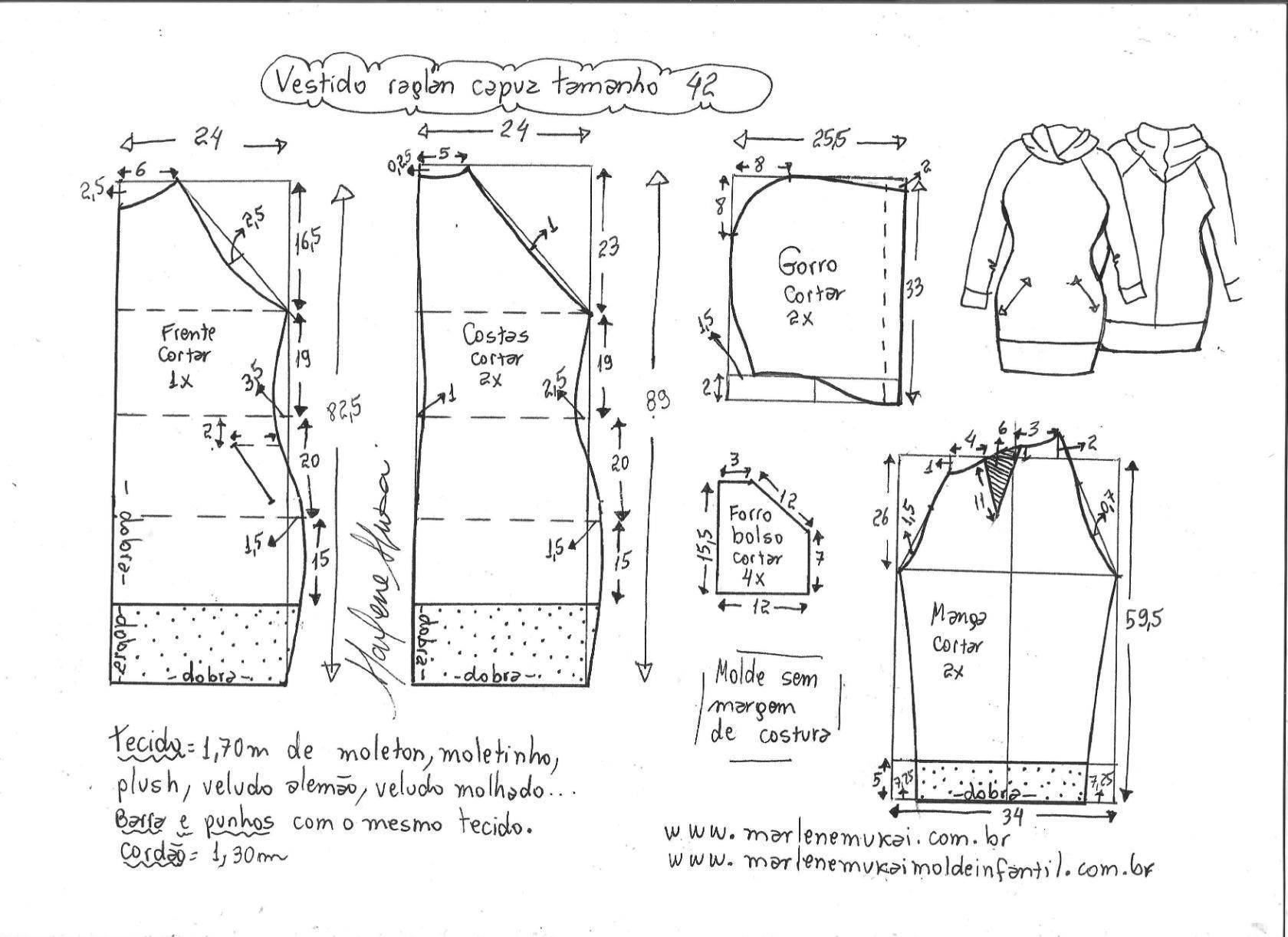 Готовые выкройки платья с длинным рукавом и капюшоном