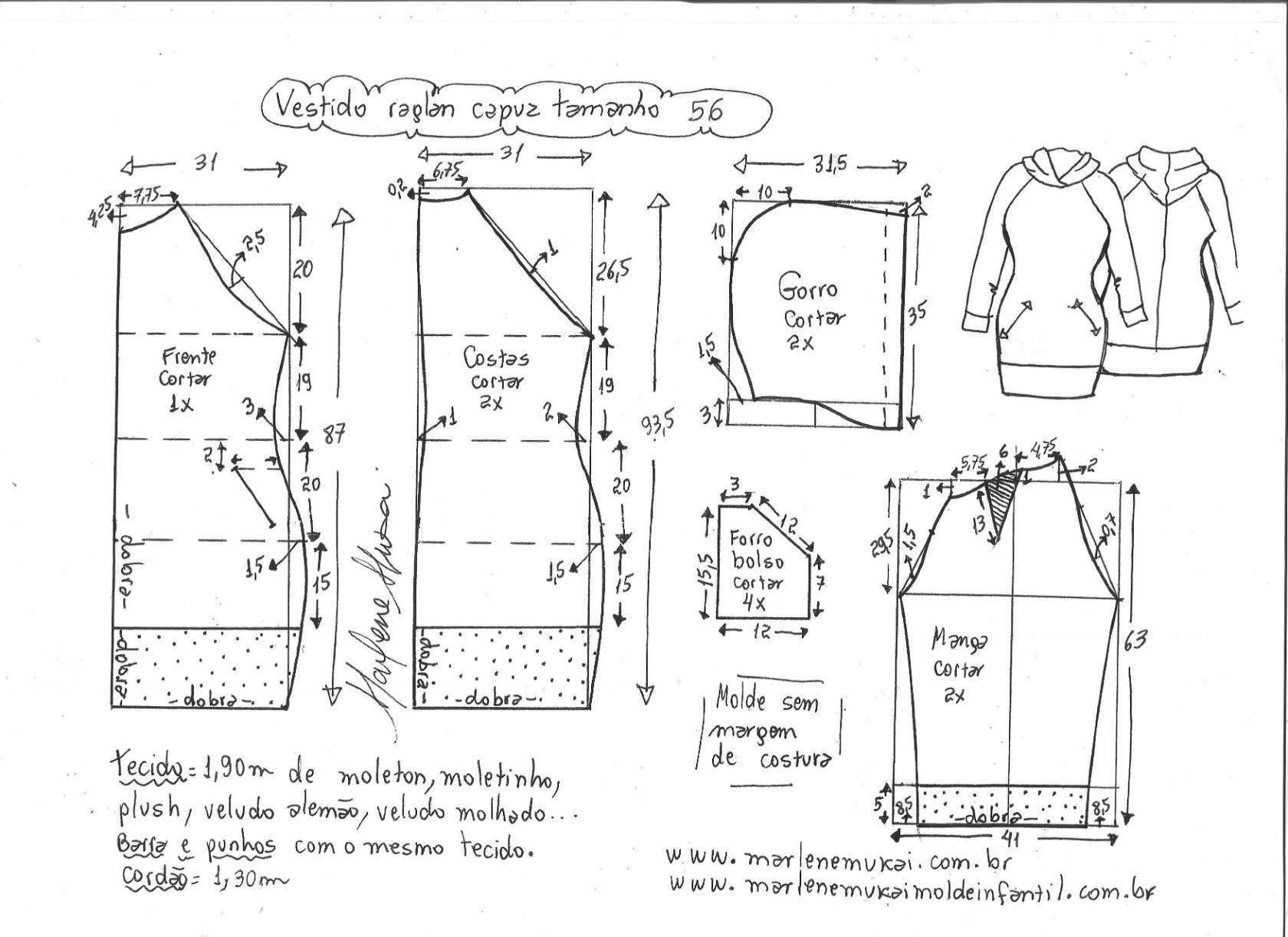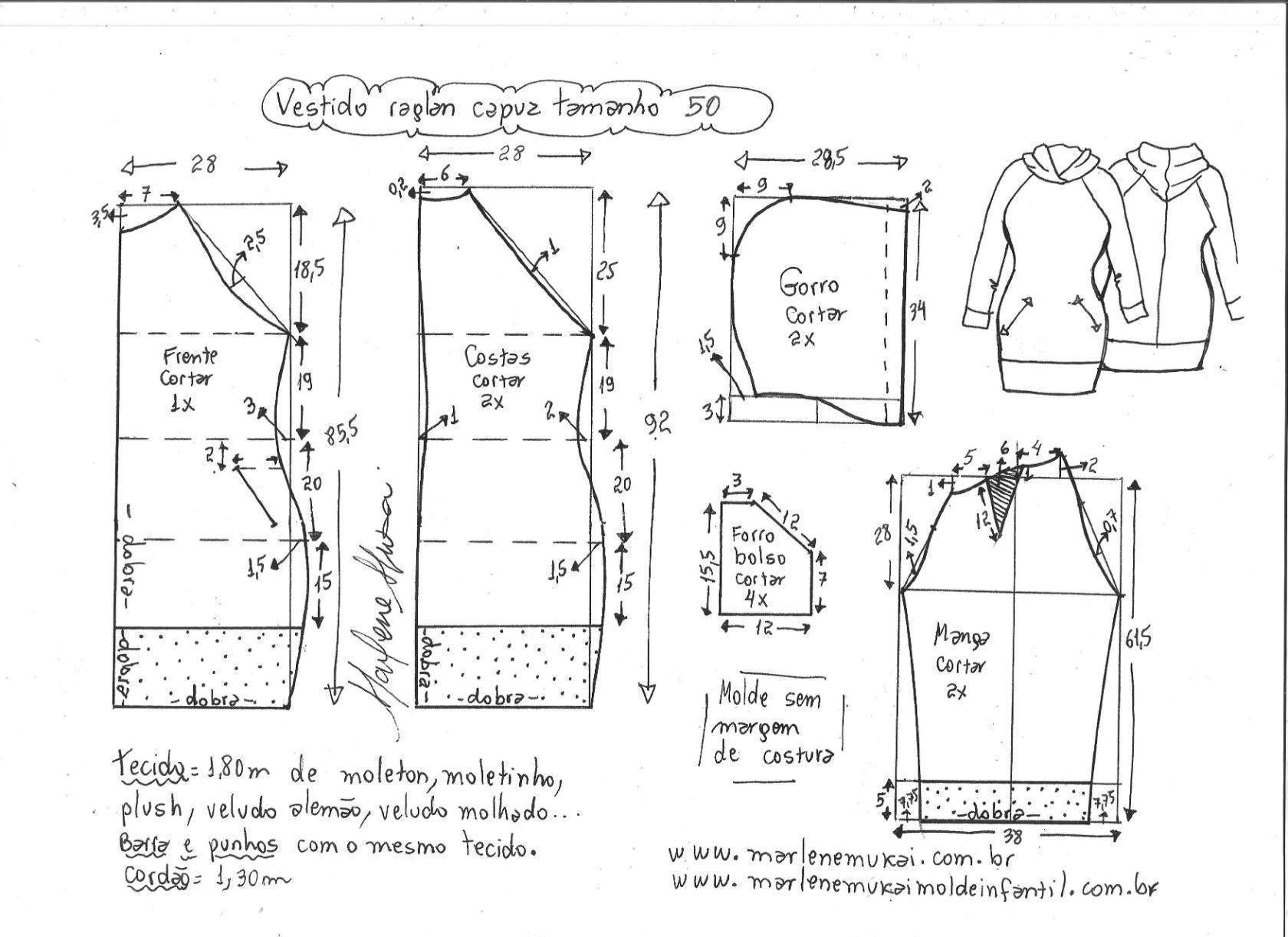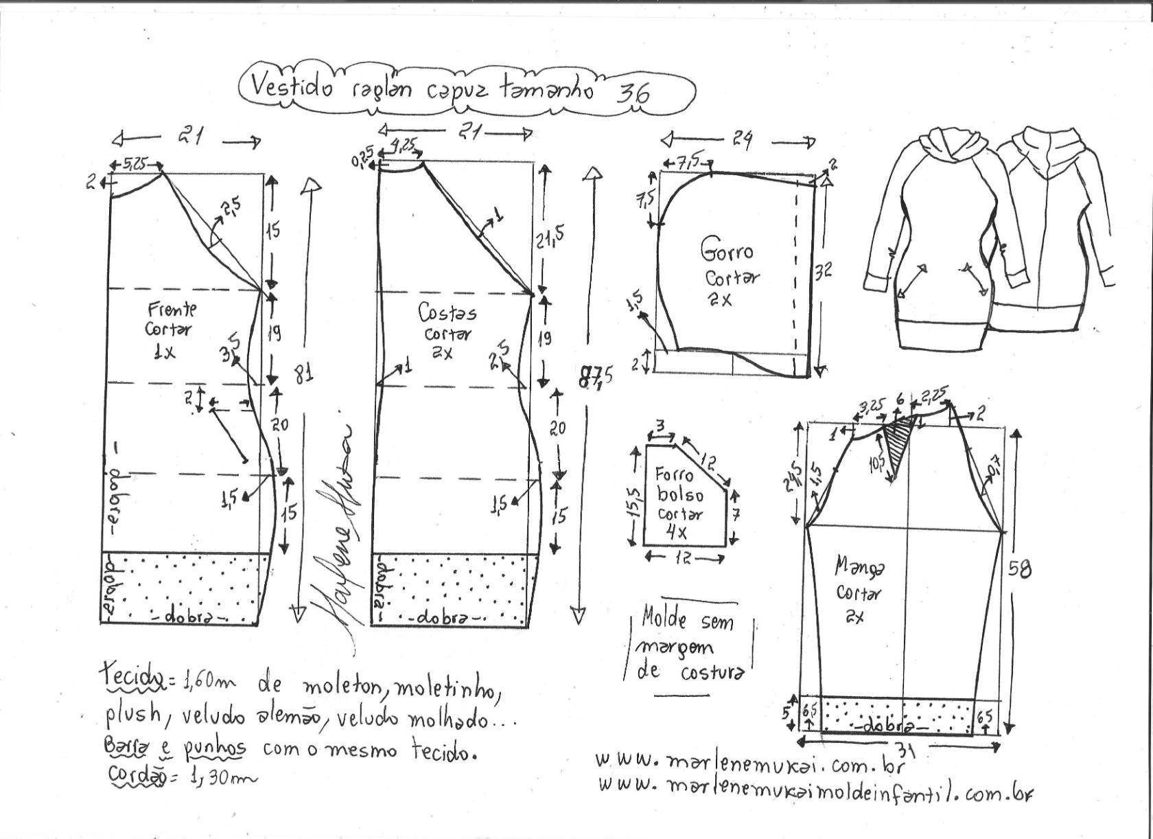 Готовые выкройки платья с длинным рукавом и капюшоном