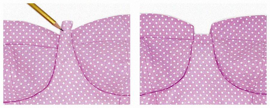 С лицевой стороны притачанные чашки бюстье выглядят вот так.