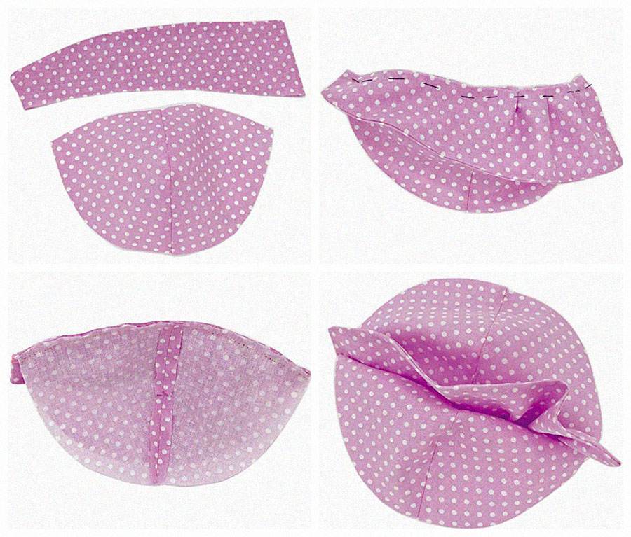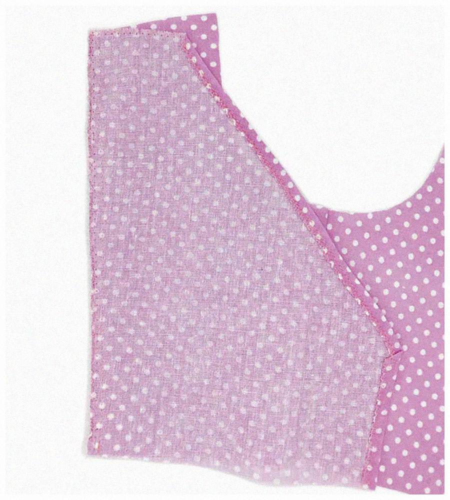 Проложите прямую строчку, сострачивая обе детали и рюш. Выверните чашечку на лицевую сторону и приутюжьте. Таким же образом обработайте правую чашку.