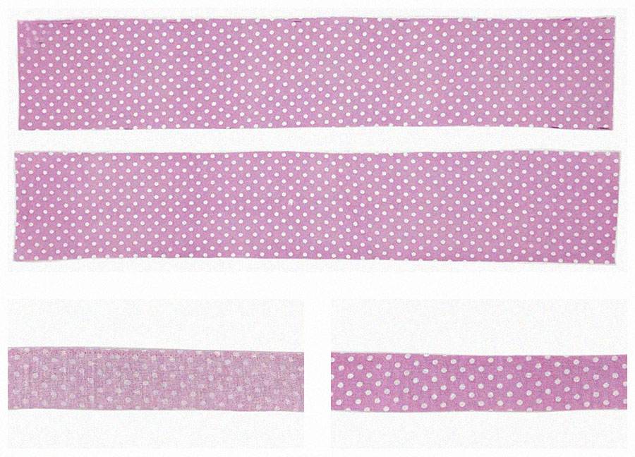 - вырежьте полоску ткани длиной 10 сантиметров и шириной 7,3 сантиметра и сложите её вдоль, завернув оба края к середине;