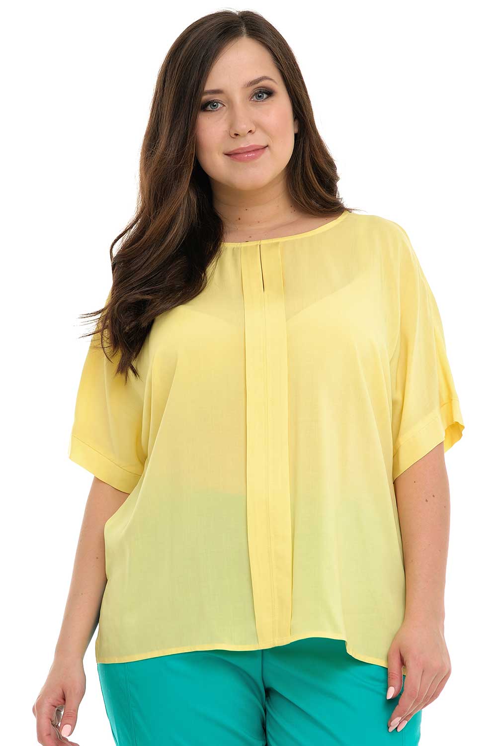 Трикотажная блузка с коротким рукавом реглан, кокетками, вертикальной деталью переда и отделкой кантом, размеры 40, 42, 44, 46, 48.  |