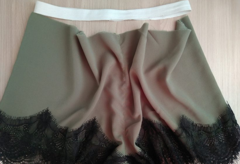 18. Пришиваю кружево к шортам на швейной машинке прямой стачивающей строчкой.