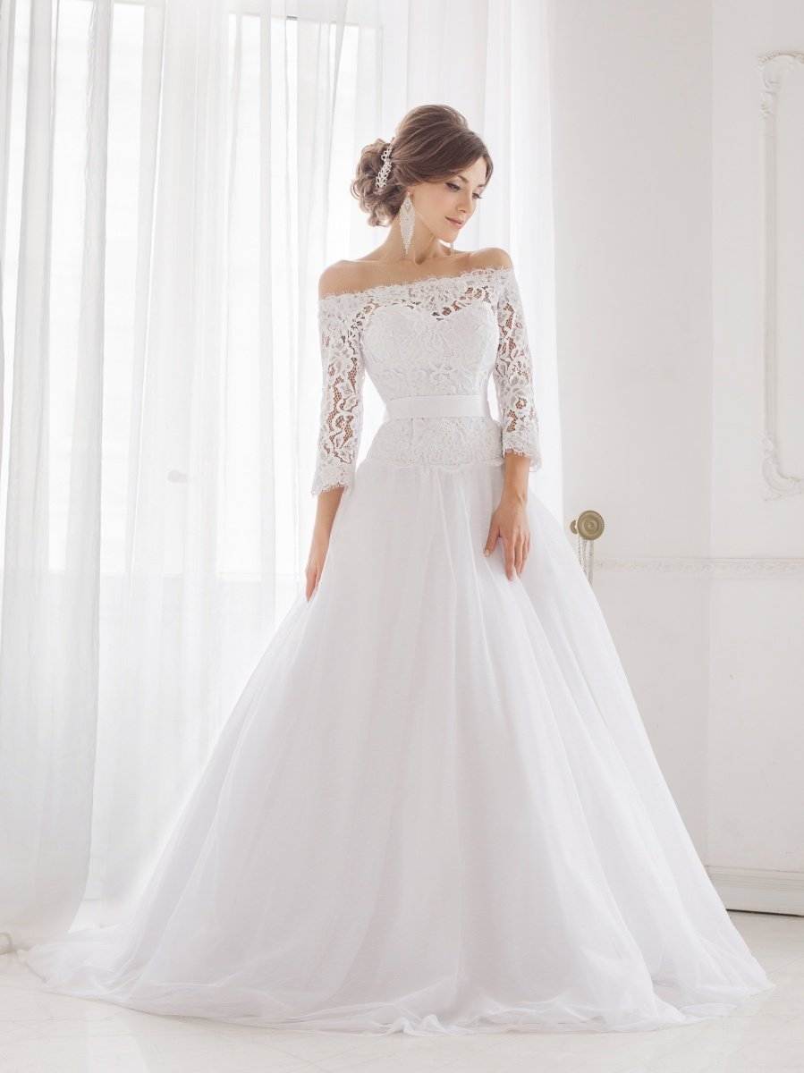 Открытые плечи смотрятся на свадебном платье очень элегантно. Такой наряд способен подчеркнуть все достоинства фигуры.