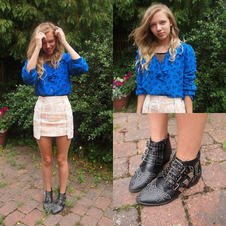 Легкую шифоновую блузку с рюшей в районе декольте смело заправляйте в юбки с завышенной талией.