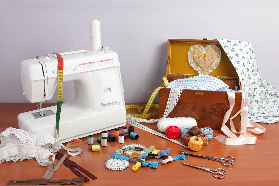 — ткань, сантиметровая лента, линейка, мел, ножницы, булавки