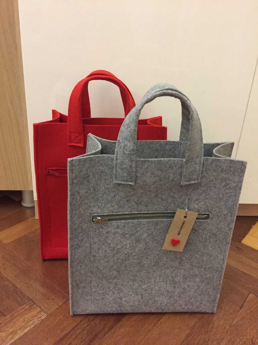 Конечно, существуют и минусы такой сумочки — к фетру очень быстро прилипает вся пыль, а стирки этого материала лучше избегать, он имеет свойство «садиться». Поэтому он мало пригоден для повседневных сумок, но зато прекрасно подойдет для моделей «на выход», так как из фетра можно сшить такие оригинальные модели, какие не получатся из какой-либо другой ткани.
