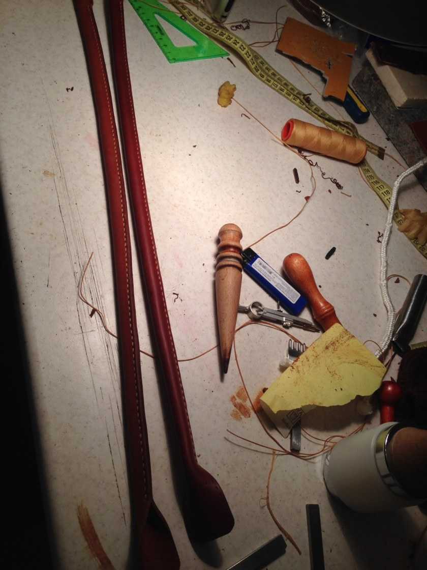 - Кожа натуральная или искусственная. Сшивается сложнее – не каждая машина может прострочить изделия. Если работать вручную тяжело, предварительно делают проколы иглой.