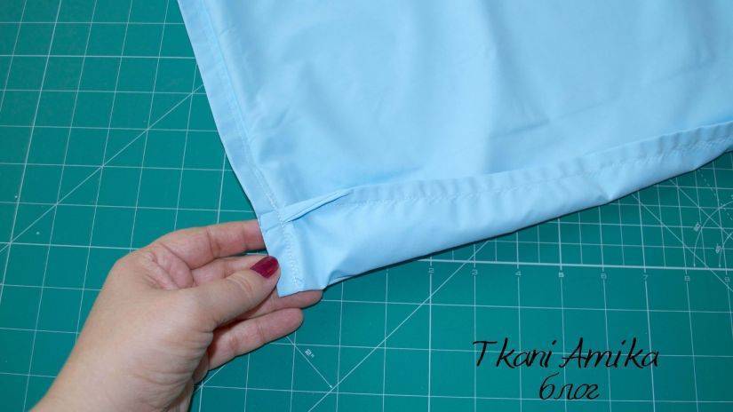 Сделайте прямой шов на швейной машинке, выверните обтачку лицевой стороной наружу. Подогните ее нижний срез, желательно сделать наметочный ручной шов для качественной фиксации подгиба длинного края обтачки.