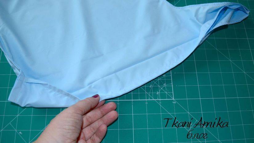 - Чтобы укрепить швы, можно вшить в подгибы при оверложивания шнур или прошить их сверху полоской из плотной ткани.