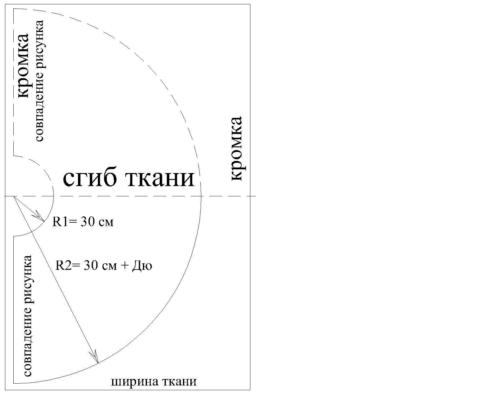 Построение выкройки юбки полусолнце на резинке