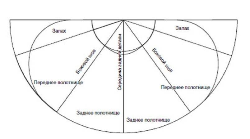 - Перенести модель на ткань и выкроить, оставляя припуски на швы и выточки.