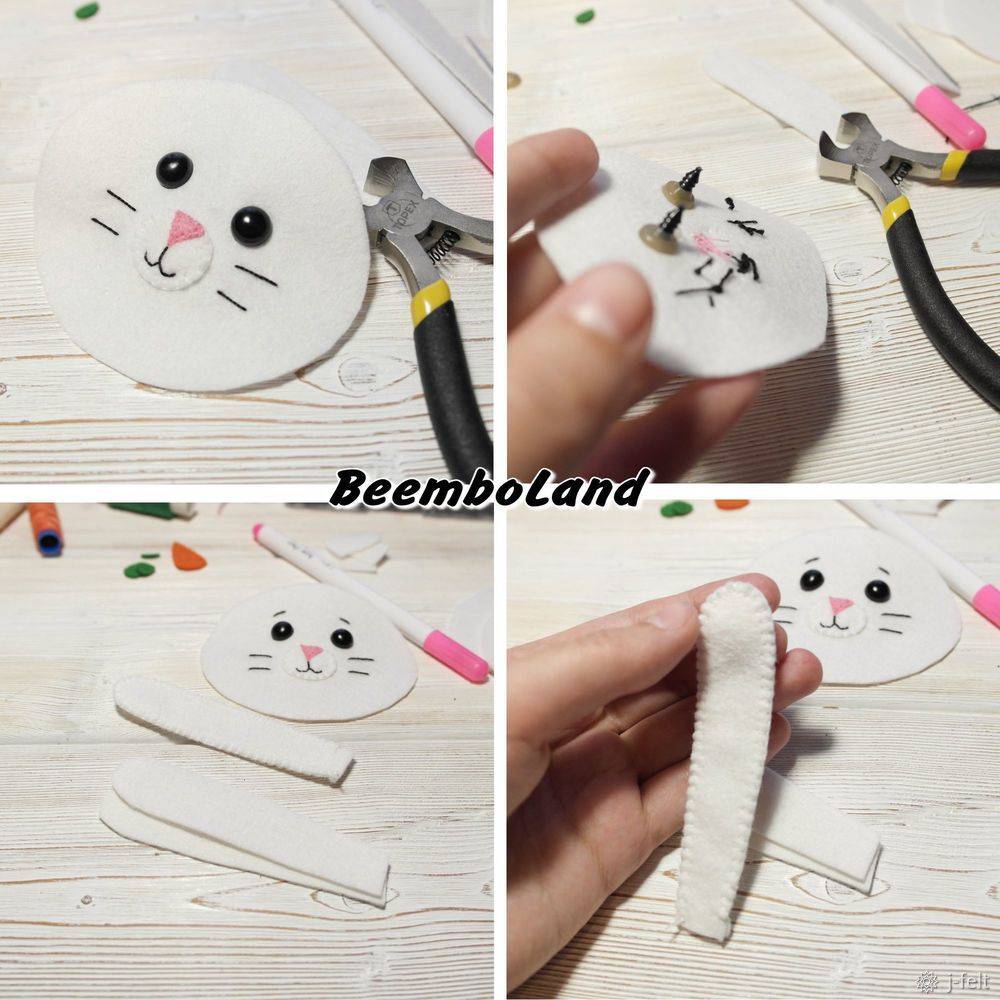 На мордочке сделайте надрезы на месте глаз и закрепите их. Можно обойтись бусинками или приклеить полубусины.