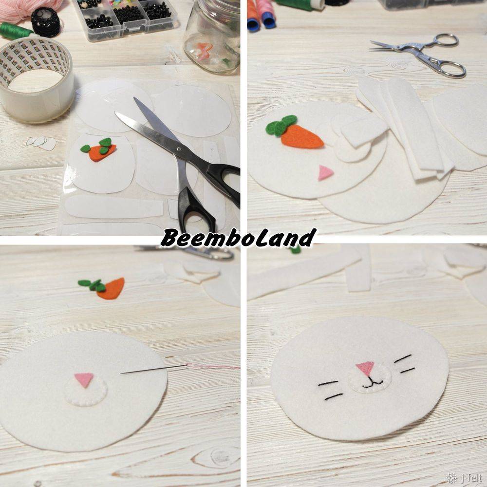 В зависимости от того, какого вы хотите сделать зайца – важного, удивленного или веселого, выбирайте и форму рта. По окончании вышивки, нитку выводим сзади головы и обрезаем, слегка ее вытянув.