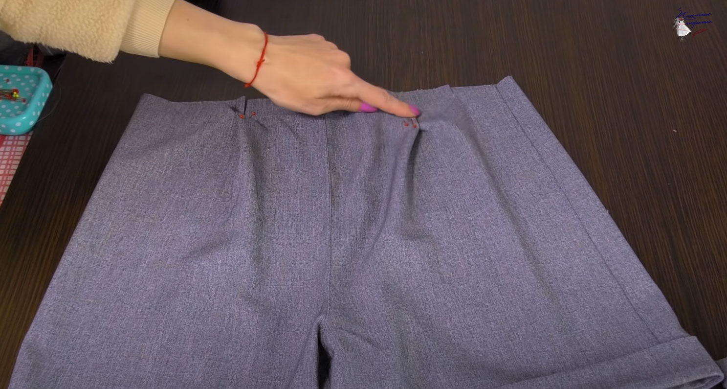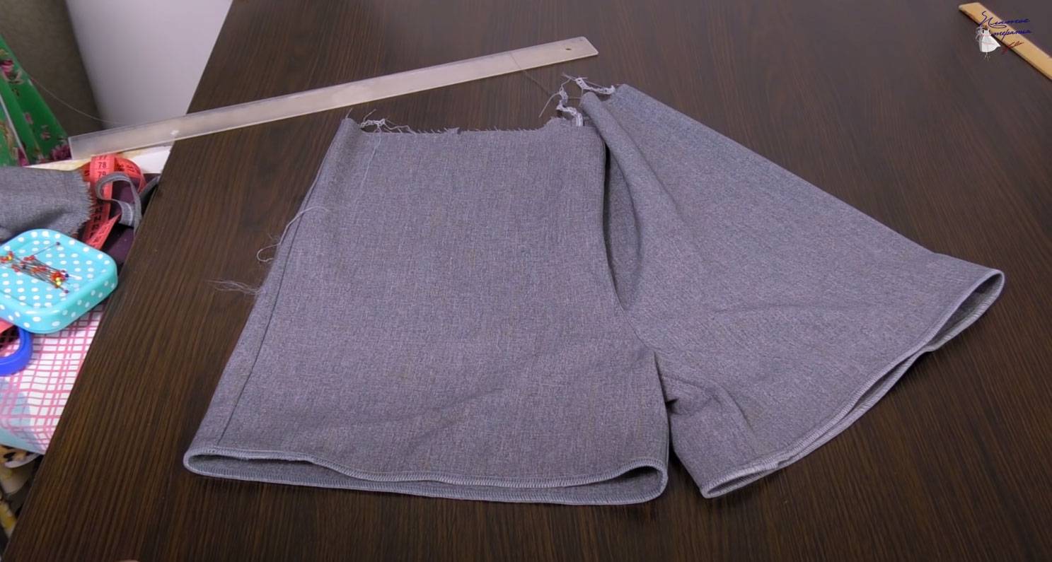 - Вытачки, находящиеся на задней части шорт нужно стачать, а затем расправить и приутюжить к боковым срезам.