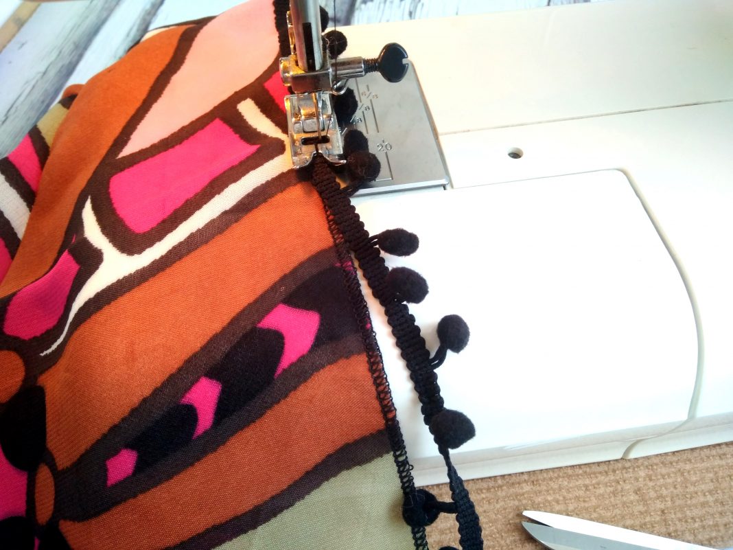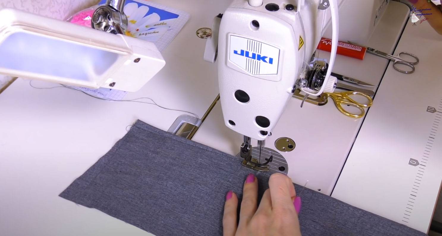 Низ обмётываем, подворачиваем на изнаночную сторону и закрепляем отделочной строчкой.