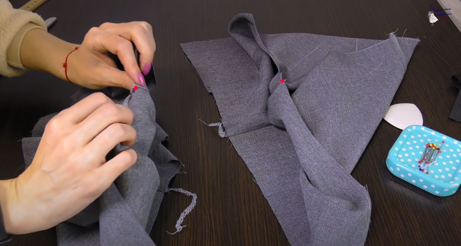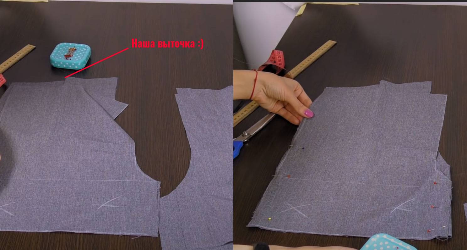 Теперь нам необходимо сшить обе детали по линии вытачки и отутюжить: