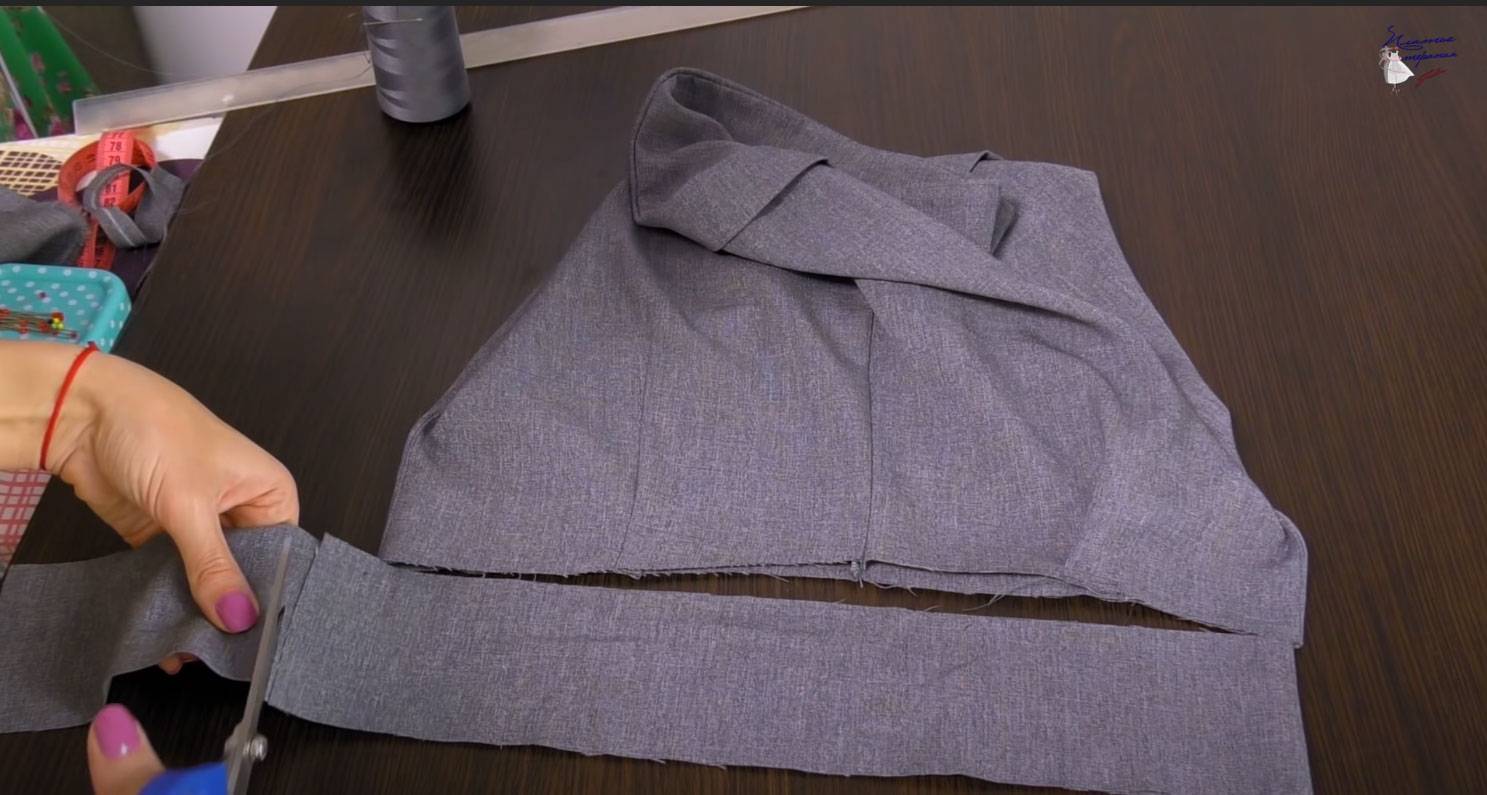 Приступаем к завершающей части нашего урока — поясу. Прикладываем наш отрезок высотой 7 см и отрезаем нужную длину: