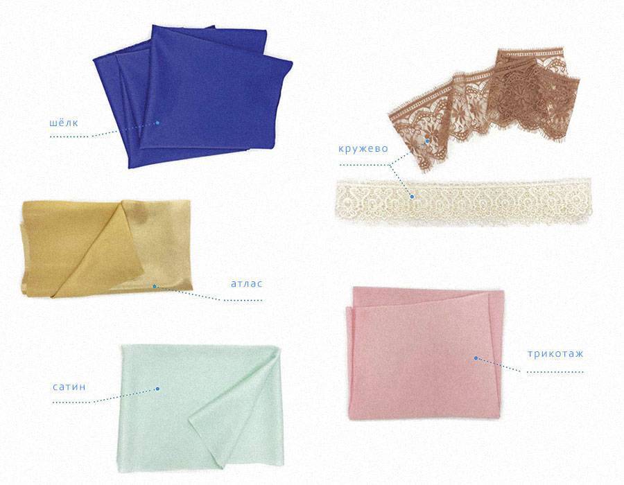 Нижнее бельё шьют из самых разных материалов — трикотажа, шёлка, атласа, вискозы, кружева. Выбор зависит от стиля, модели белья и вашего вкуса