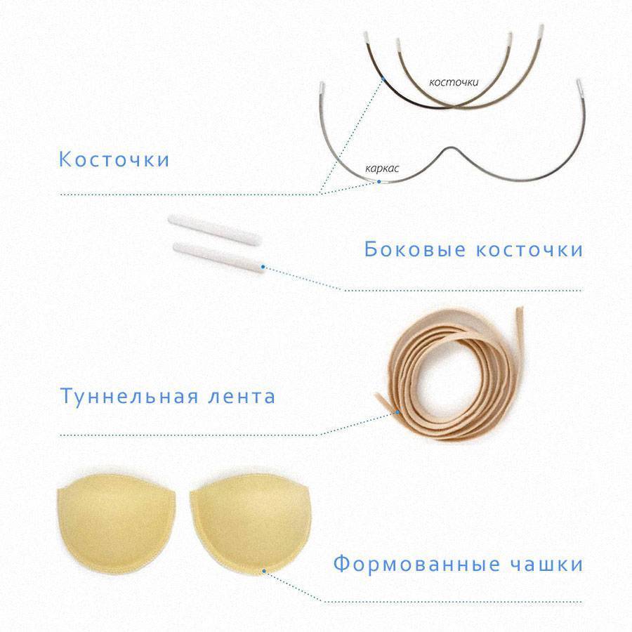 Это металлические или пластиковые дугообразные детали, которые вставляют в основание чашек бюстгальтера, чтобы обеспечить поддержку груди и придать ей фиксированное положение. Косточки нужно подбирать только вашего размера. Маркировка размеров косточек совпадает с маркировкой размеров бюстгальтеров. Например, если размер вашего бюстгальтера 80В, размер косточек будет В.