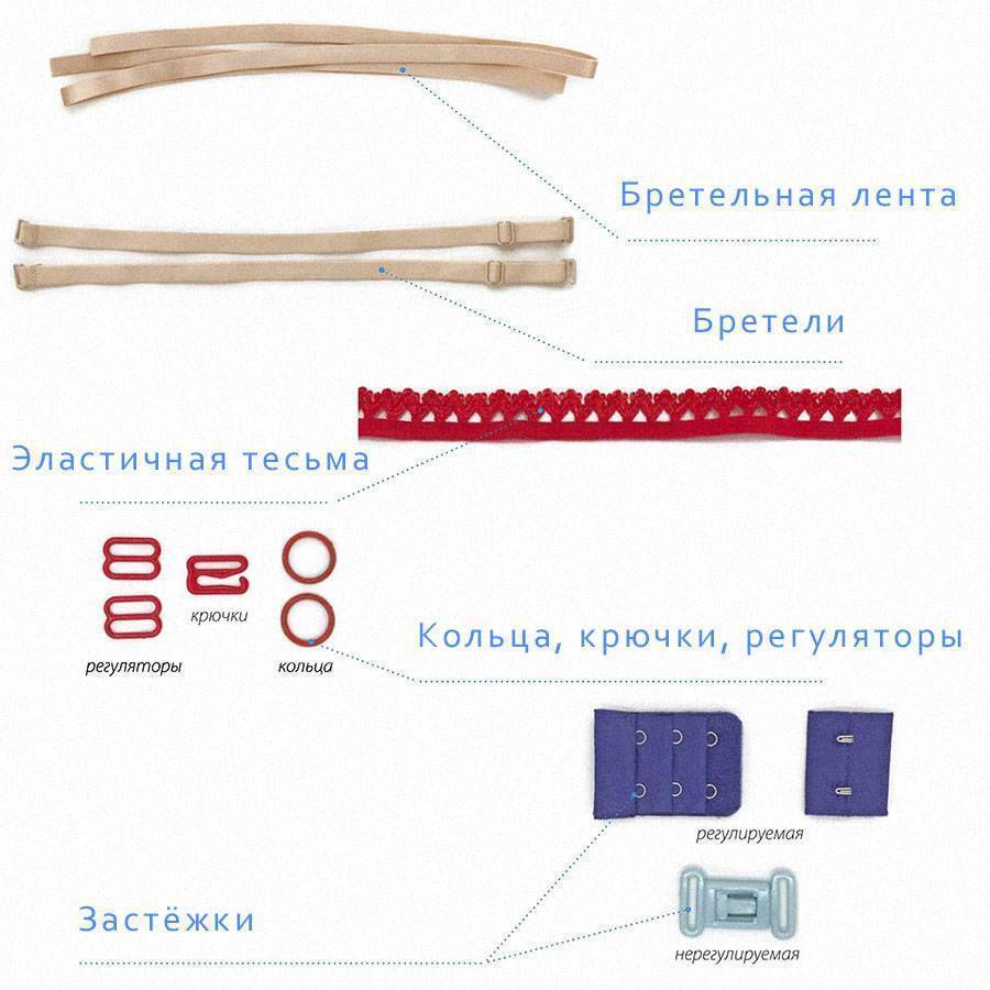 Фурнитура и отделочные материалы не только выполняют декоративную функцию, но и увеличивают износостойкость и прочность белья, придают и помогают сохранить ему нужную форму и правильную посадку по фигуре.