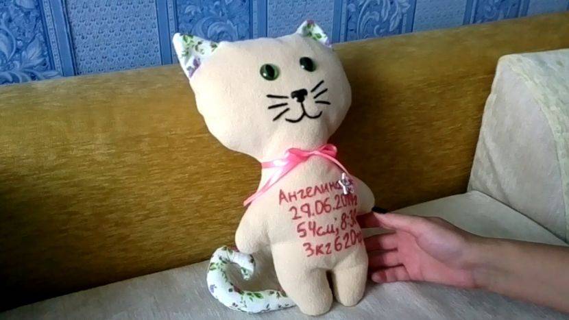 Далее нужно начать сшивать вырезанные части и оставить отверстие для набивания. Наполнитель лучше брать вату либо синтепон. Вывернуть кота и набить его полностью, утрамбовывая. Изделие готово.