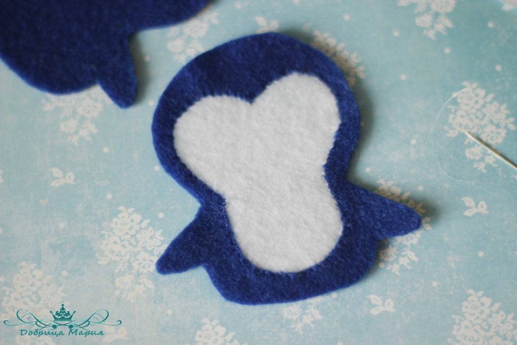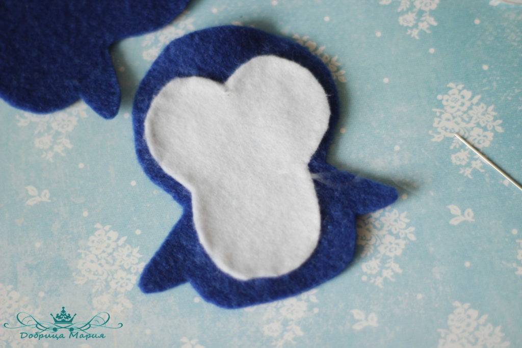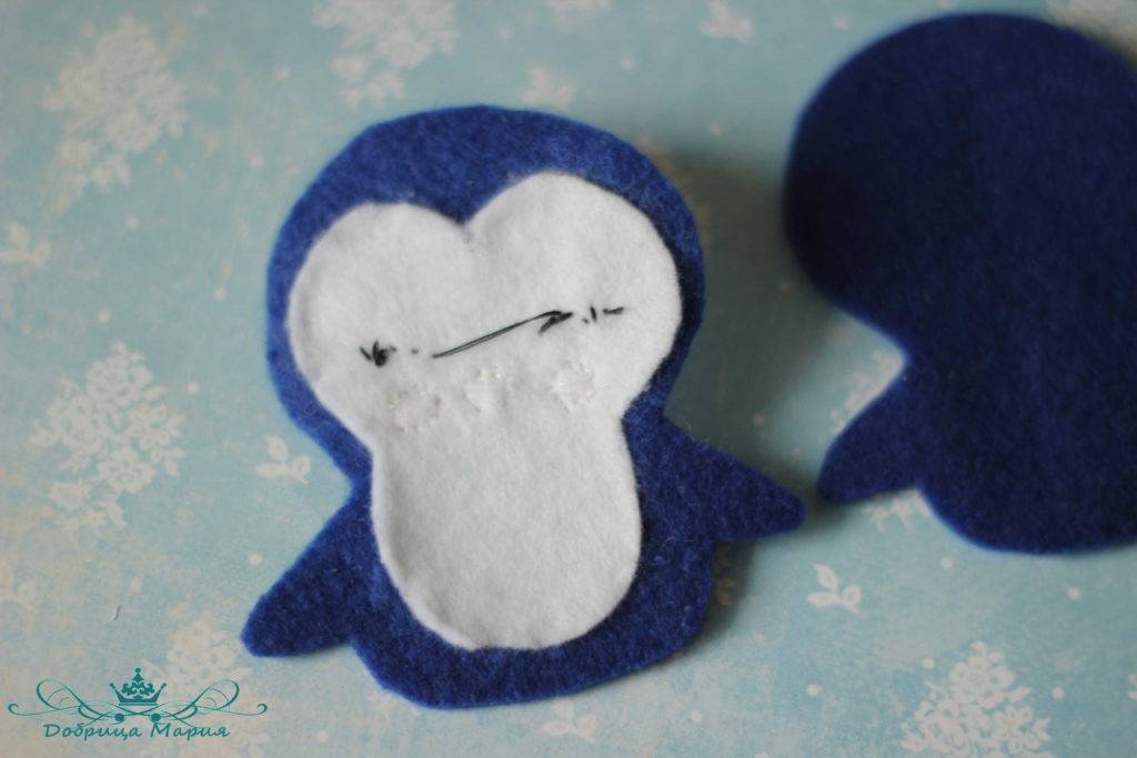 Например, весь пингвин, затем грудь, щеки, нос, лапы. Как правило, все, что нужно сшить, должно быть сшито отдельно.