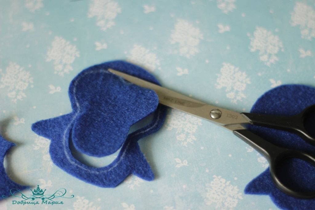 Затем приложите выкройку к фетру, закрепите ее булавками и аккуратно вырежьте.