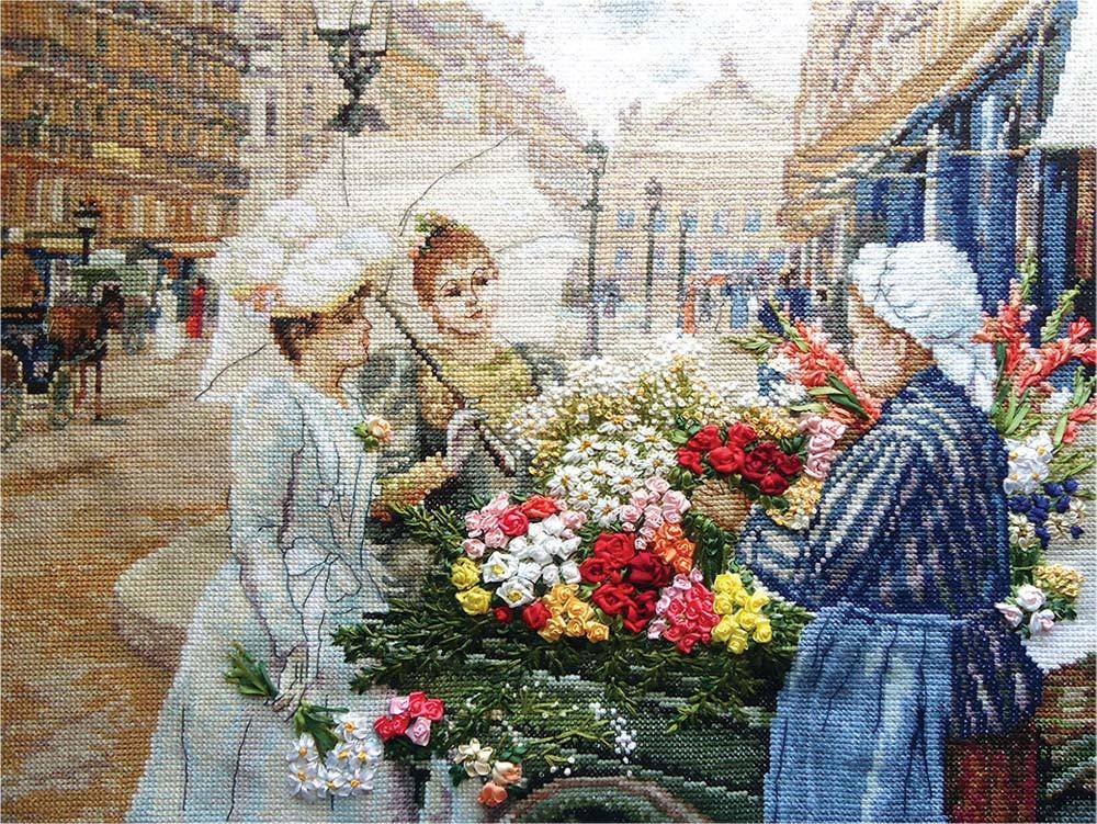 - Лентами вышивают картины. Техника стала популярной в связи с тем, что изделия, вышитые атласными лентами, выглядят сияющими и объемными.