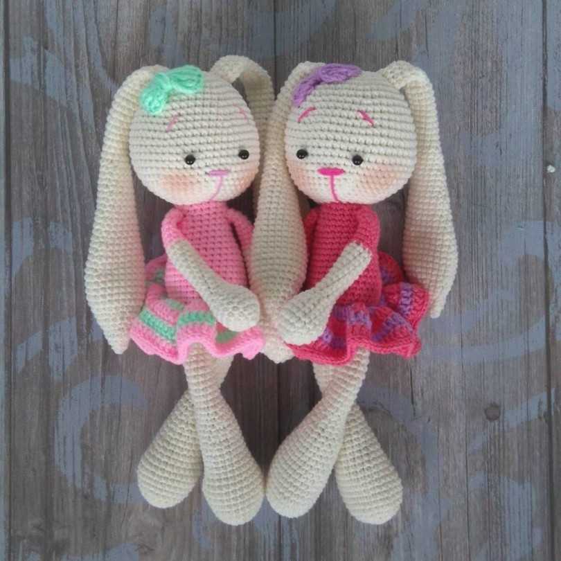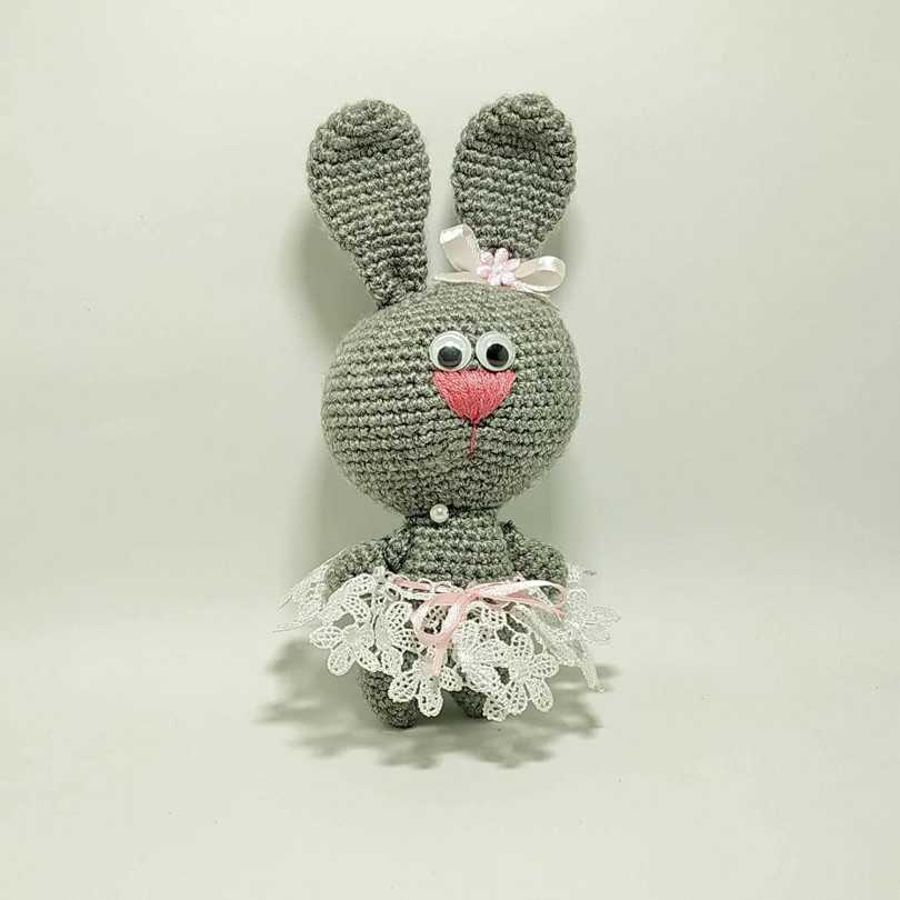 - Зайчишка, выполненная в стиле амигуруми, может являть собой единое целое либо складываться из нескольких разрозненных фрагментов (по обыкновению, их соединяют между собой с помощью иголки или спиц).