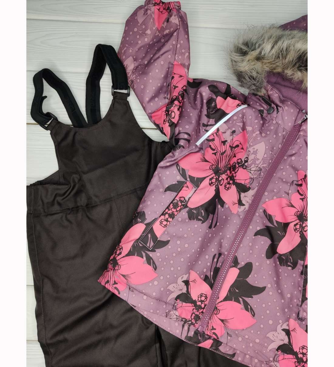 Стильный костюм для мальчика. На куртке два прорезных кармана, а также на левом рукаве кармашек для мелочей. На манжетах имеются липучки – утяжки. Также у куртки есть внутренняя защита от продувания. Мех на капюшоне можно отстегнуть. Полукомбинезон имеет усиление на коленях и ягодицах. Пояс можно регулировать по ширине, лямки можно отстегнуть.