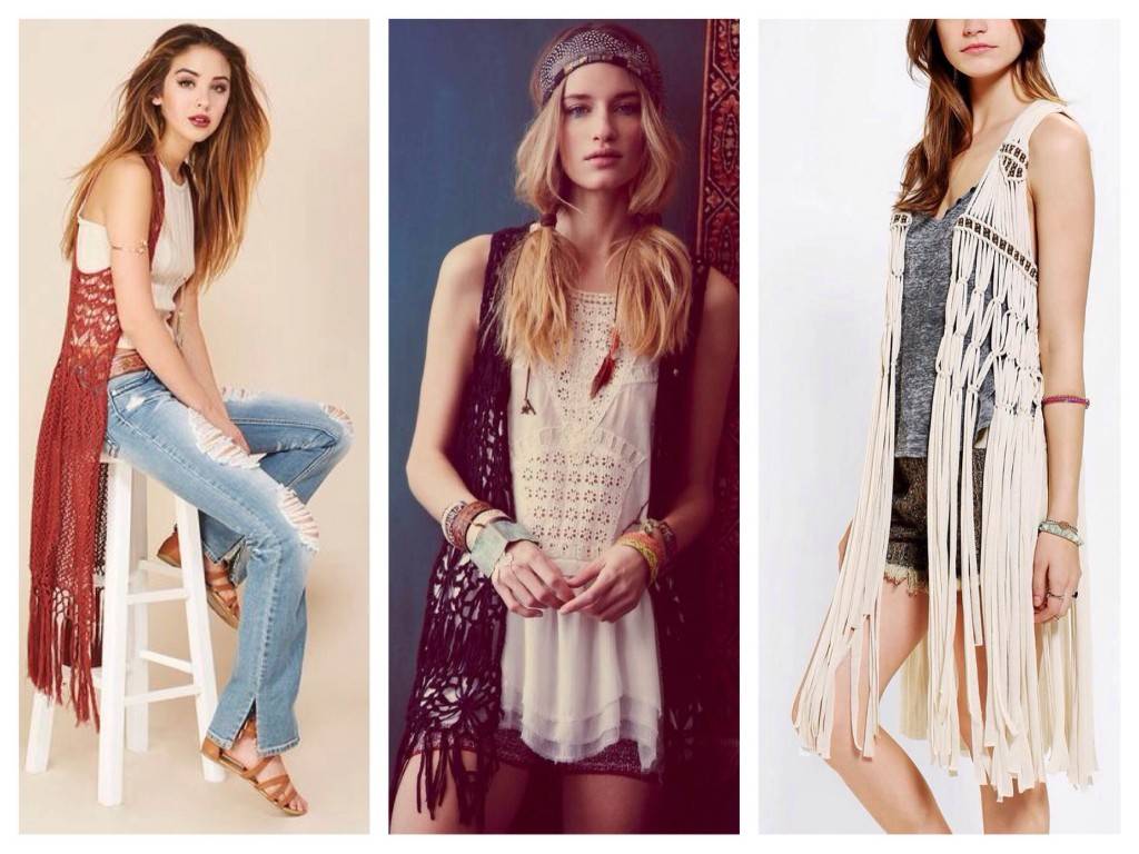 Еще один актуальный тренд – удлиненный жилет в стиле бохо. Его можно комбинировать с рваными джинсами, шортами, длинными и короткими юбками, платьями и сарафанами. Обувь стоит выбирать без каблука – балетки, сандалии, кроссовки.