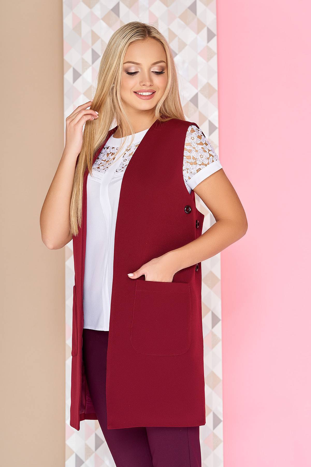 Безрукавка удлинённого или длинного кроя до колен – это консервативный английский жакет, только без рукавов. Его легко вписать в любой выбранный женский образ: деловой костюм или нарядный вечерний вариант.